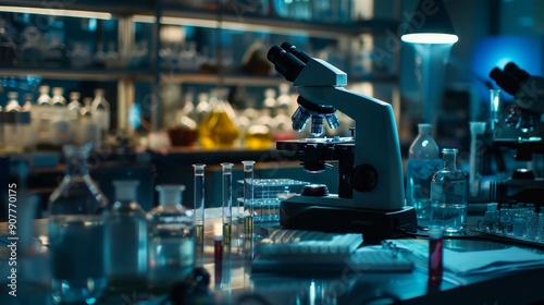 Modern Microscope In A Laboratory.