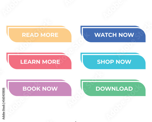 Modern minimal button set read more, learn more, book now, watch now, shop now, download