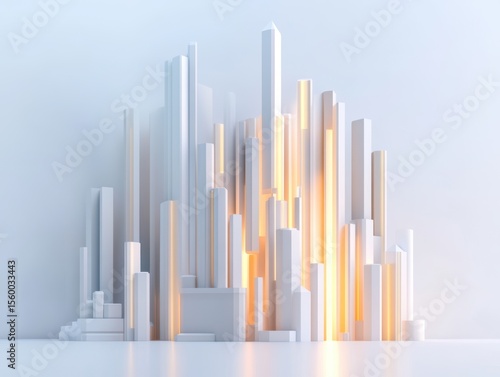 Modern minimalist architectural design showcasing a vibrant abstract skyline with illuminated elements