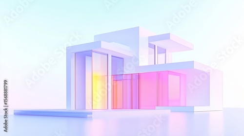 Modern Minimalist Architecture Render of a Home with Glass Walls and Soft Colors
