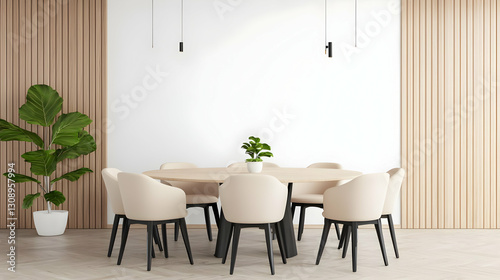 Modern Minimalist Dining Room with Light Color Scheme and Plant