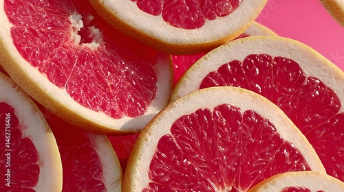 Modern Minimalist Flat Lay Design Showcasing Vibrant Grapefruit Slices with Tropical Summer Ambiance and Organic Culinary Appeal