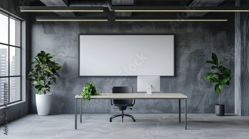 Modern Minimalist Office with Whiteboard Mockup, frame mockup, 3d render, 3d illustrations.