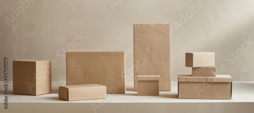 Modern Minimalist Packaging Set: Eco-Friendly Cardboard Boxes and Containers for Product Display