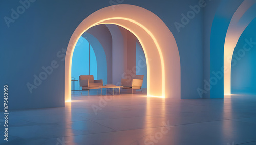 "Modern Minimalist Podium with Soft Lighting and Geometric Background – 3D Rendering for Product Display or Branding"