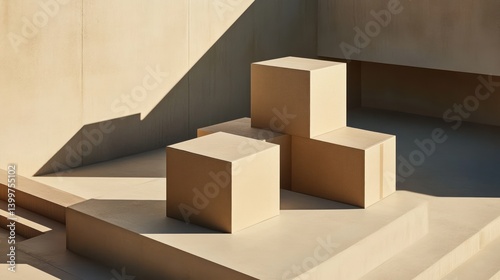 Modern Minimalist Scene with Geometric Shapes and Soft Shadows