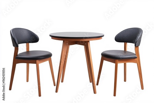 Modern Minimalist Wooden Table and Chair Set on White Background for Interior Design