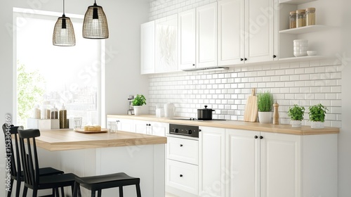 Modern minimalistic kitchen design with bright natural light and stylish decor elements