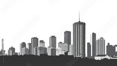Modern module apartment block with sleek design and geometric shapes, city living, skyline, cityscape