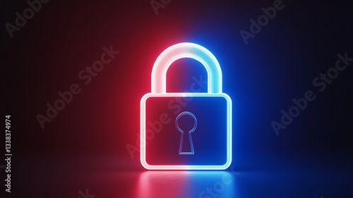 Modern Neon Lock Icon with Bright Blue and Red Colors on Dark Background for Security and Protection Concepts