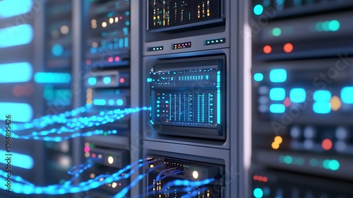 Modern Network Equipment with Blue LED Lights for Efficient Data Transmission