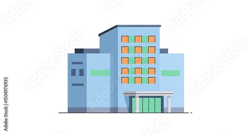 Modern office building architecture urban landscape flat vector illustration