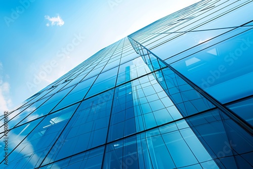 Modern office building with blue sky, and glass, blurred image background , generated with AI