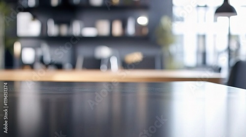 Modern Office Desk Close-Up with Blurred Background in Workspace