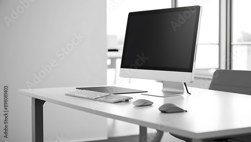 Modern Office Desk Setup with Computer, Keyboard, and Mouse