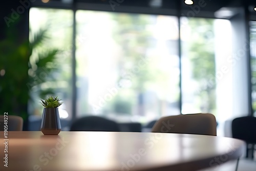 Modern office interior with panoramic window blurred background for business presentation mockup