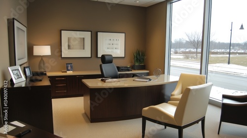 Modern Office Interior with Winter View