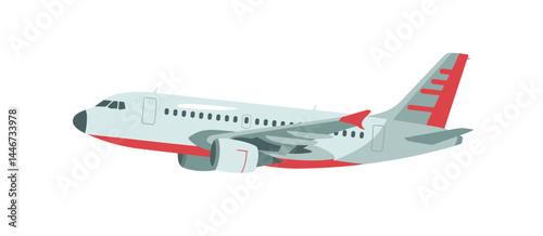 Modern Passenger Airplane in Flight Side View Illustration