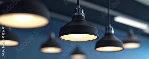 Modern pendant light design illuminating a stylish interior space with a blue background and multiple light fixtures.