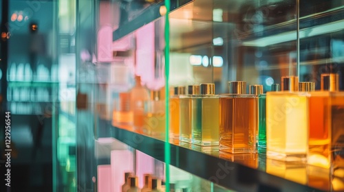 Modern perfume bottles in a sleek retail display