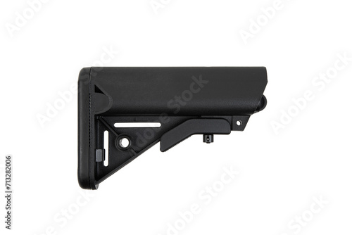 Modern plastic folding buttstock. Replaceable part of the gun. Isolate on a white back