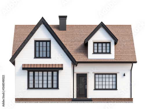 Modern residential house design with classic features and charm on a transparent background, cut out