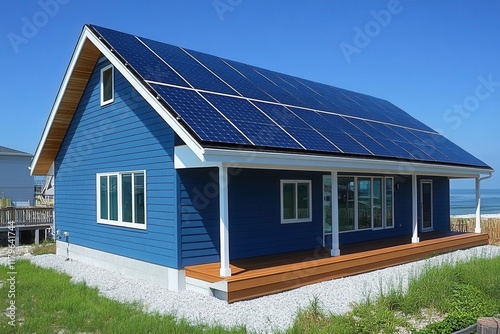 modern residential solar installation detailed view of photovoltaic panel array on contemporary house roof with professional installation setup