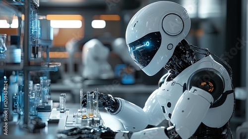 Modern robot assisting a scientist in a high-tech laboratory, advanced and futuristic