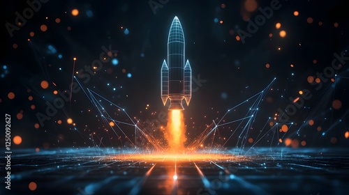 Modern rocket launching from a glowing digital platform, sleek and futuristic design for sci-fi and technology concepts