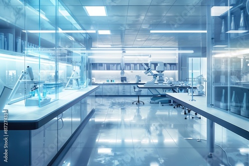 Modern Science Laboratory Interior with Empty Space for Copy. Medical Equipment and Tools