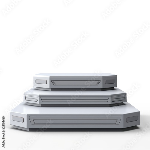 Modern Sci-Fi Empty Podium Isolated on White Background with Clipping Path, Full Depth of Field, and Focus Stacking Generative AI