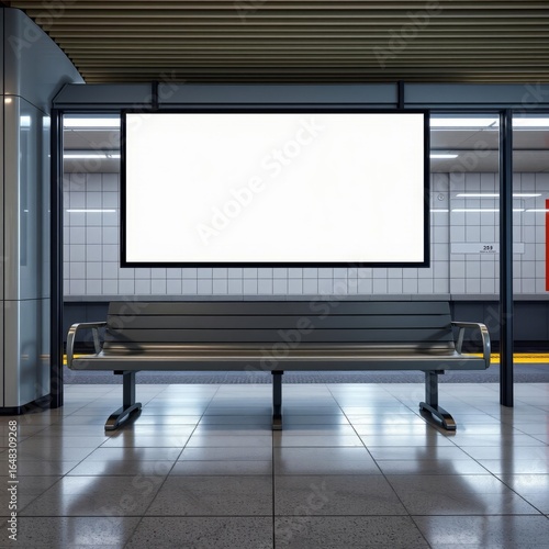 Modern seating at a subway platform bench with a wide horizontal billboard mock-up above book mockup blank template isolated book professional presentation blank empty creative composition v