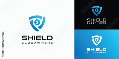 Modern security shield with keyhole logo design