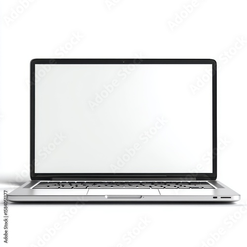 Modern silver laptop computer with blank screen isolated on white background