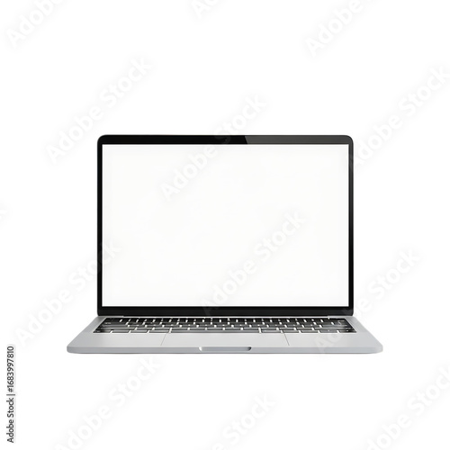 Modern Silver Laptop with Blank White Screen Mockup, Isolated on Black Background