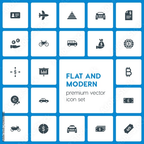 Modern Simple Set of business, transports, industry, money Vector fill Icons. Contains such Icons as target, competition, race, pound, id and more on dark background. Fully Editable. Pixel Perfect