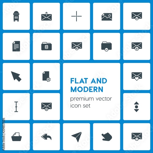 Modern Simple Set of folder, cursors, files, email Vector fill Icons. Contains such Icons as text, scroll, electronic, database, folder and more on dark background. Fully Editable. Pixel Perfect