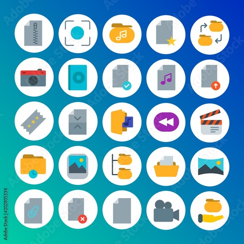 Modern Simple Set of folder, video, photos, files Vector flat Icons. Contains such Icons as dvd, nature, divider, business, disc, cd and more on gradient background. Fully Editable. Pixel Perfect