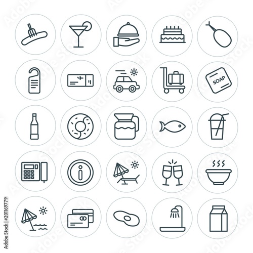 Modern Simple Set of food, hotel, drinks, travel Vector outline Icons. ..Contains such Icons as sweet, bath, scrambled, barbecue, credit and more on white background. Fully Editable. Pixel Perfect