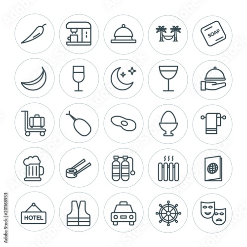 Modern Simple Set of food, hotel, drinks, travel Vector outline Icons. ..Contains such Icons as coffee, sign, heater, ship, light, red and more on white background. Fully Editable. Pixel Perfect
