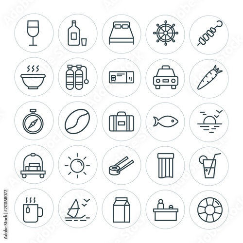 Modern Simple Set of food, hotel, drinks, travel Vector outline Icons. ..Contains such Icons as milk, mattress, room, rescue, office and more on white background. Fully Editable. Pixel Perfect