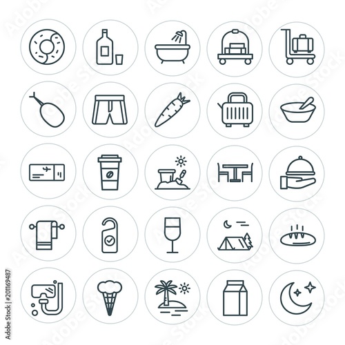 Modern Simple Set of food, hotel, drinks, travel Vector outline Icons. ..Contains such Icons as moon, coffee, travel, food, equipment and more on white background. Fully Editable. Pixel Perfect