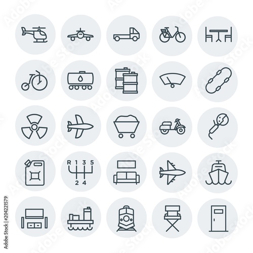 Modern Simple Set of transports, industry, furniture Vector outline Icons. Contains such Icons as industry, bicycle, airplane, gas, oil and more on white background. Fully Editable. Pixel Perfect