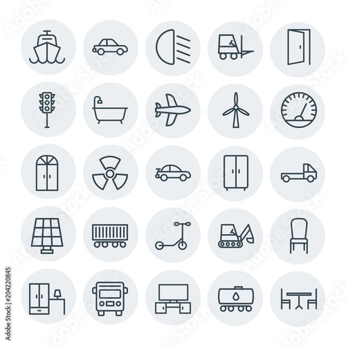 Modern Simple Set of transports, industry, furniture Vector outline Icons. Contains such Icons as work, ocean, car, seat, television and more on white background. Fully Editable. Pixel Perfect