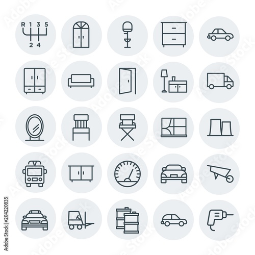 Modern Simple Set of transports, industry, furniture Vector outline Icons. Contains such Icons as worker, office, drawer, oil, chair and more on white background. Fully Editable. Pixel Perfect