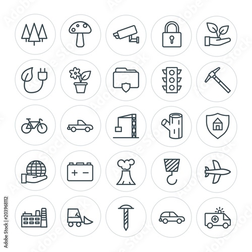 Modern Simple Set of transports, industry, nature, security Vector outline Icons. Contains such Icons as airplane, view, car, security and more on white background. Fully Editable. Pixel Perfect