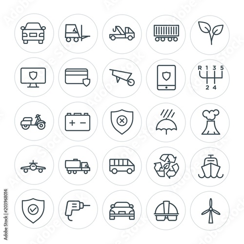 Modern Simple Set of transports, industry, nature, security Vector outline Icons. Contains such Icons as ecology, helmet, building, energy and more on white background. Fully Editable. Pixel Perfect