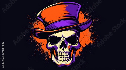 Modern skull vector with a top hat, designed in a graffiti style for T-shirt prints.