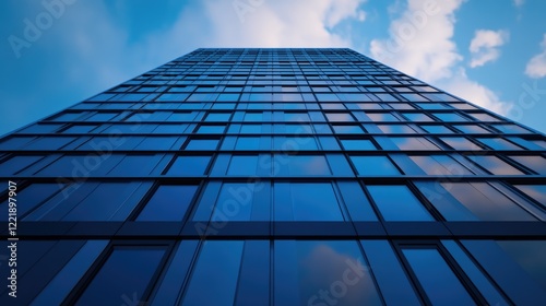 Modern Skyscraper Architecture: A Blue Glass Facade Reaching for the Sky