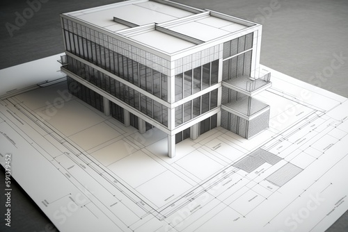 modern skyscraper drawn on top of a blank sheet of paper. Generative AI